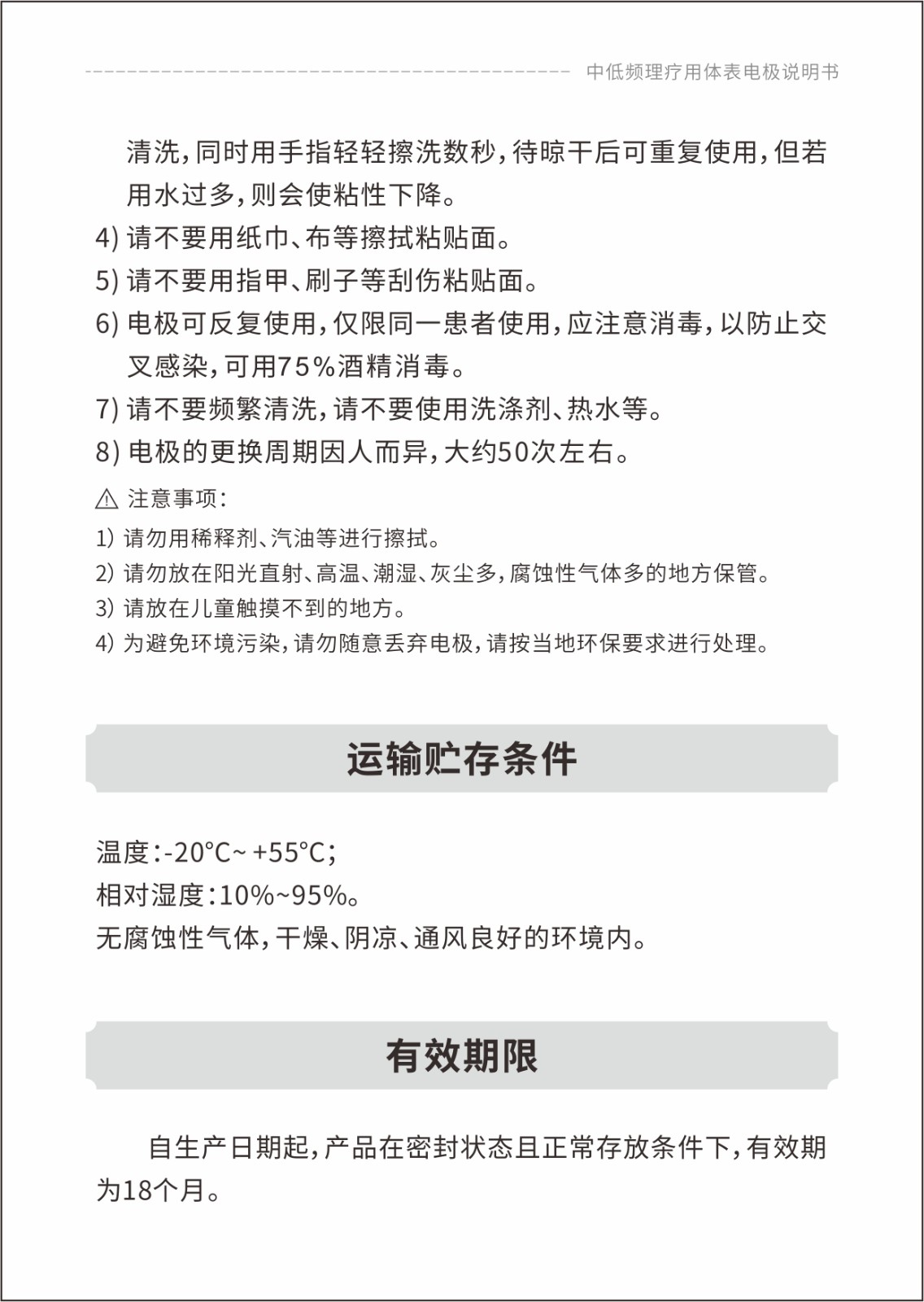 中低頻理療用體表電極貼片說明書